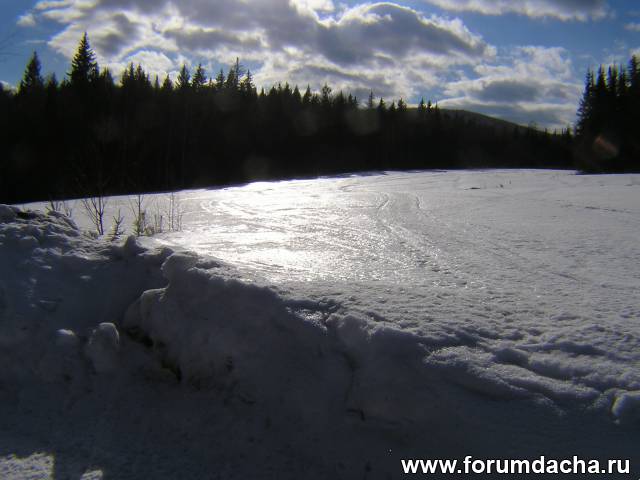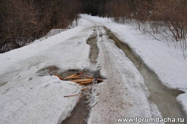 Вот уже и промоины.Всегда не знаешь как получится с дорогой.В прошлый год уже в апреле был проезд,а в позапршлый дважды размывало,проезжали только к 9 мая.Лед на дороге лежит до 15 июня.Потому что тайга,тень,как в холодильнике.