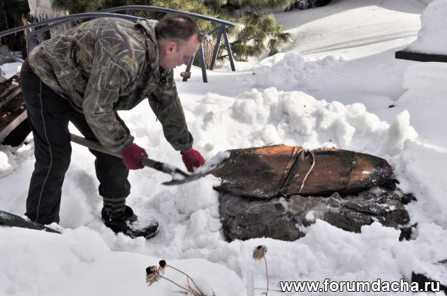 Снег почистили к туалету,к дровам,выход,около дома,к бане,Накидали 7 кубов для воды и т. д.