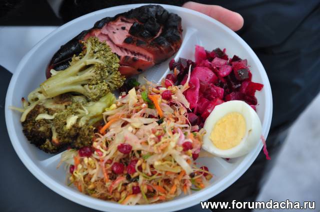 Вот и еда-салат из пророщенной пшеницы с брусникой.