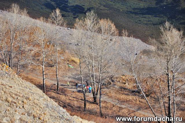 Снега на южном склоне уже нет.Видно две компании пьют пиво греются на солнышке.