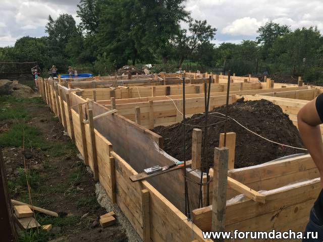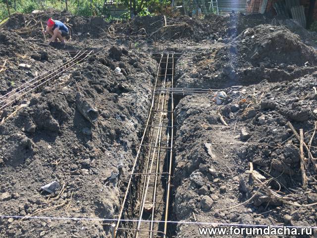 Монолитный армированный ленточный фундамент глубиной 80см под двух этажный дом 10х10.