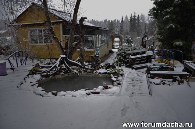 Второй день валит снег.Уже белым-бело,выпало 5 см.и не тает.Днем +2,ночью -4.Фото получились зимние.Будет ясно попробую грузить.