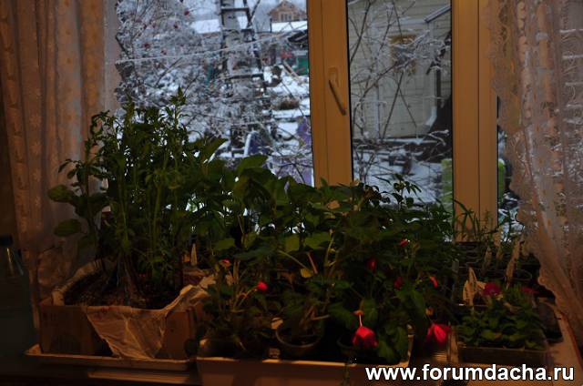 Рассада мается на подоконнике в двух домах.