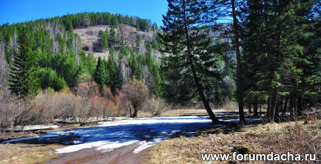 На даче прожили 4 дня.В ущельях снег.