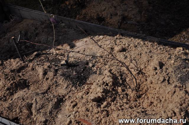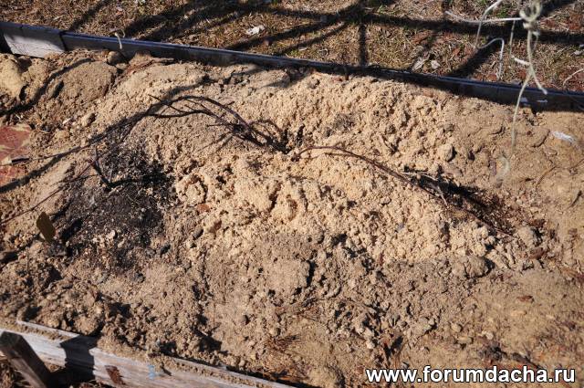 Я бы посадил и в мерзлую,но там цветы многолетники.Вотчина жены.не забалуешь.Пока не оттает не пересадишь.Веток слишком много для укладки.Уложил в низу сделал грядочку и все, остальные некуда пристроить.