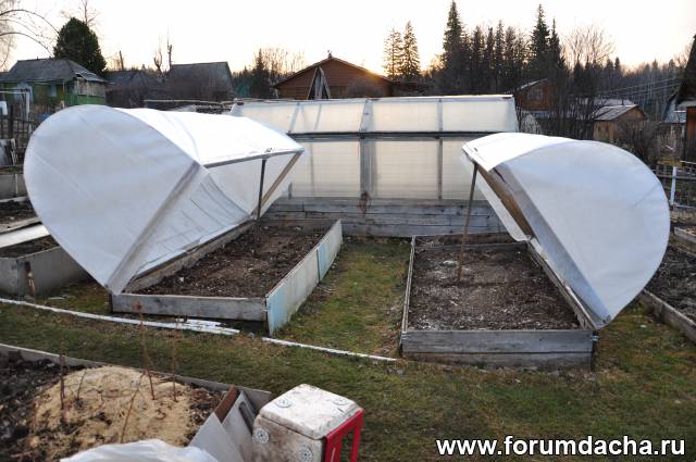 Начали закрывать грядки для скорейшего пробуждения,чеснок,клубника.