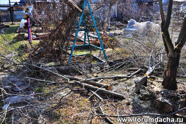 Обрезал все кустарники и иву.