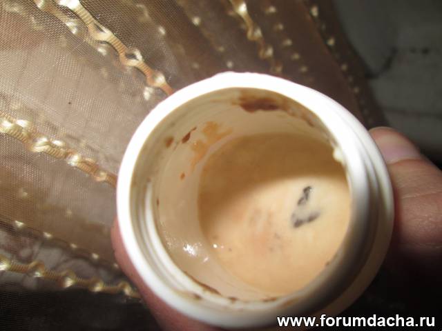 ph остановить конечно можно,уничтожив того кто этот ph, делает,нагнать нужную кислотность,и нагреть чтобы все молочно кислые бактерии умерли! но мне кажется что дело не в этом, сегодня на столе обнаружил, старый лимон, и на нём была плесень, тут значит дело не в кислотности! вот сильно задумался,может мицелий умер из за того что стал субтрат жиже в последствии, по вазможности повторю опыт. 17 сентября, обнаружил в лесу старый шампиньон, придя домой, от любопытства, решил кинуть кусочек на ржаное тесто,под руки попался пузырёк от витаминов, тесто нагрел на водяной бане до 80 градусов и оставил, до остывание ,потом кинул туда шампиньон,о санитарии дело не шло,да вроде капал пару капель перекиси,через месяц посмотрел баночку не чего нет,только этот кусочек почернел! и вчера снова попался этот пузырёк, там не какой плесени по прежнему,только за последние две недели немного стал жиже, и на поверхности стал более влажным,но это может от того что 2 назад он попал под -2 мороза и от таял! вот фото