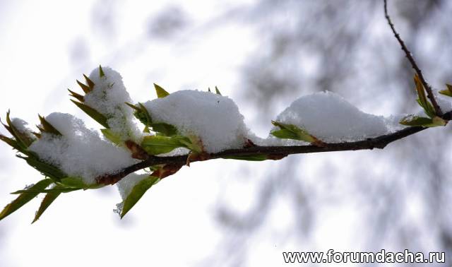 У меня хоть снега и не было практически (только пролетал), но по итогам прихватило морозом свежие посадки голубики и винограда (тот и другой стоит подвявшие, я так предполагаю, не столько прихватило листву, я её отливал холодной водой, вроде помогло, почернения пока нет, сколько корни не могут всасывать влагу, буду надеяться что отойдут ещё), а так же немного листочки и побеги малины (этих не успел отлить водой, уже чернеют), чуть чуть земляники (часть успел соломой засыпать, но у части листья прихватило по краю). У нас ещё обещают морозы через некоторое время, я так понимаю, которые на цвет черёмухи. Из наблюдений, мне понравилось поведение в мороз жимолости, она начинала цвести, как только мороз ударил, она цветочки закрыла и сидит тихонько, ждёт тепла!