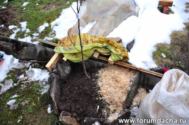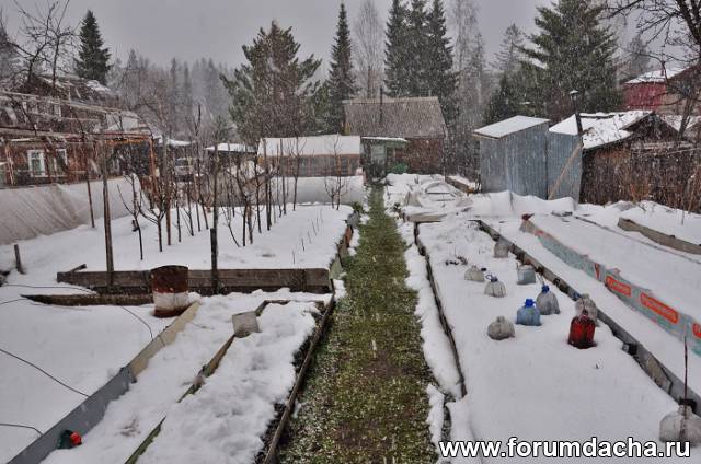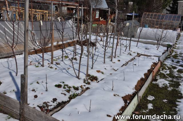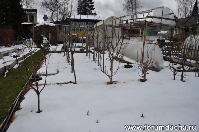 Еще не растаял весь снег,еще не кончился дождь,а вода уже стоит,даже в верхней части сада,поэтому копать ямы для посадки у нас бессмысленно.