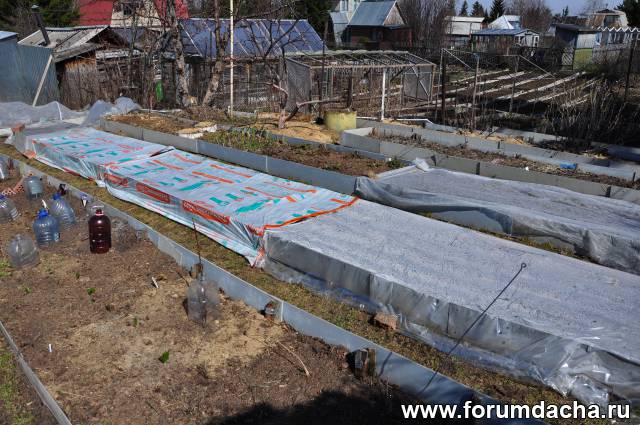 Сегодня +22 И сильный ветер .Почти все привели в порядок.Три теплицы и парничок открываются, когда выглядывает солнце. досеяли лук и морковку.Осенью садил озимый лук,накрывал толстым слоем мульчи чтобы не прихватило морозом в октябре. Мульчу отгребли,обнаружили дружные всходы,ждем будет ли опыт удачным.Дружно всходят посевы краснолистных яблонь.Пока листики все зеленые.Всходят и позапрошлые посевы,как и говорил Александр Иванович будут всходить три года.Завтра похолодание ,дождь,4 дня минусы по ночам,только в четверг начнем высаживать рассаду в теплицы.И наконец то начнем отсаживаться зеленью,цветами,тыквы,кабачки и т. д. Делаю еще три откидных грядки