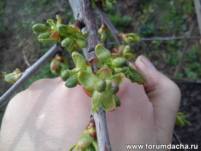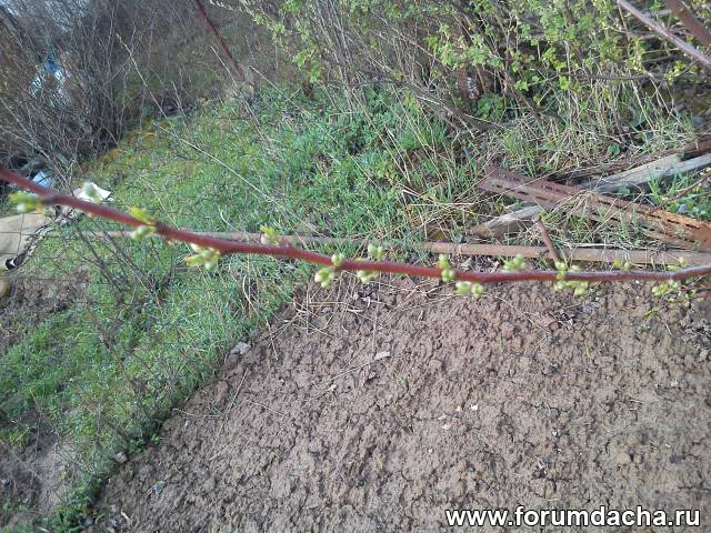 Меня удивила слива "Гордость Урала". Прислали осенью 2012 г. прутик в 30 см. За 2 года вымахала более 2-х метров. Ну, выросла - ладно. Но вот цветения в этом сезоне не ожидал. Вся усыпана цветковыми почками. Наверное, придется часть завязи удалить для первого плодоношения. На фото (сегодня утром сделал) одна из боковых веток.