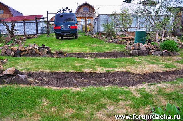 Убрал с террас шифер и камни,подравнял,буду загазонивать.