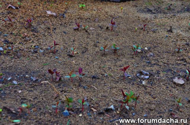 Всходы краснолистных яблонь.