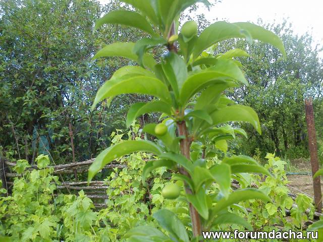 Итак. Саженец прислали в октябре 2012 г. Сразу же и посадил на место, без прикопа, зимовала под снегом. В 2013 году вегетация была сдержанная, но вот 2014 год порадовал - вымахала на 2 метра. А весной 2015 зацвела, не ожидал. (фото 1). Цветет забавно, совсем по другому, чем местные сливы. Цветочные почки располагаются непосредственно на многолетних ветках, как облепиха, без всяких прутиков (фото 2). Листья тоже чуднЫе, такие узкие и вытянутые. Ну и сам плод (фото 3). Красивого цвета и довольно крупного размера.