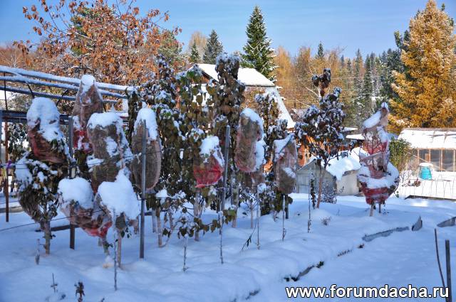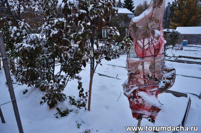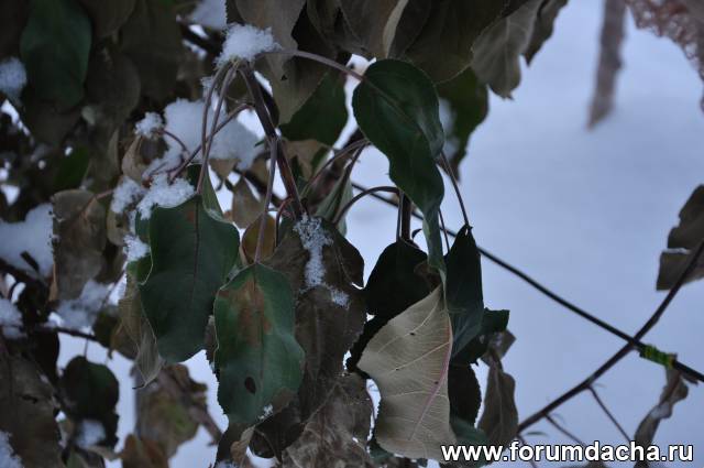 Снега 1,2 м.-1,5 м.Перун на 3-й год наполовину обломило снегом,поэтому он маленький.Я груши еще ни как не формировал.У дальних соседей 500 метров от нас в гору Купава выродила 15 ведер на 12 год первый раз.