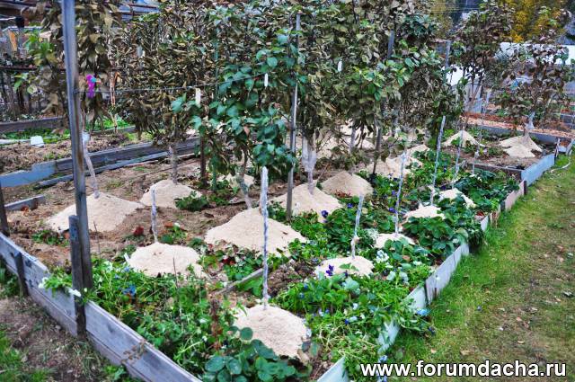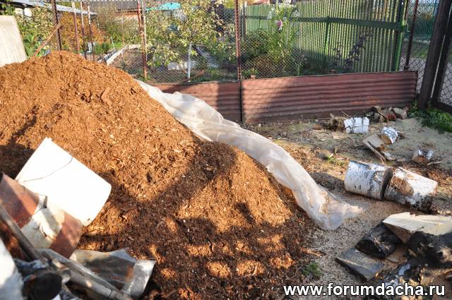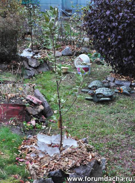 Пропало 3 яблони.Их приствольные круги готовлю под посадку винограда.Укладываю навоз,траву.