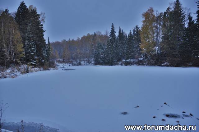 Прудик покрылся тонким льдом.Это источник технической воды.