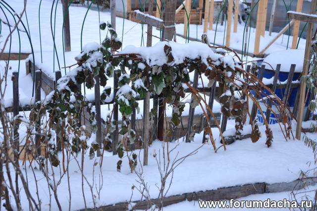 У нас тоже снег не растаял, И видимо уже не растащит до весны. Только на дорогах протаяло.. И листья на деревьях ещё висят. Даже сильным ветром их не сорвало? На некоторых сортах и сеянцах- колонных, вовсю зелёные.. Продолжаю обрезку винограда. В этом году удастся только пригнуть. Без дополнительного укрытия опилками? Таскать на руках вёдрами не могу. А с садовой тележкой уже не пройти? На винограде лист пожелтел и высох, и почти весь сорвало ветром.