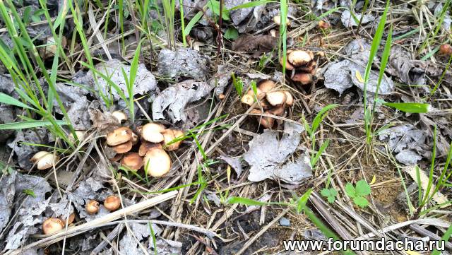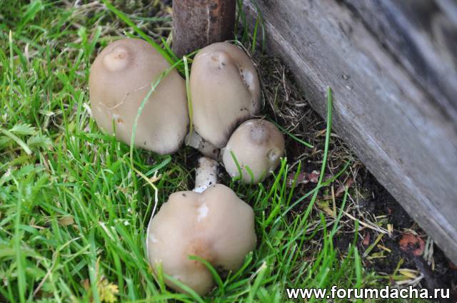 Вокруг грядки появилось несколько колоний таких грибов.Это новый вид намоем участке.