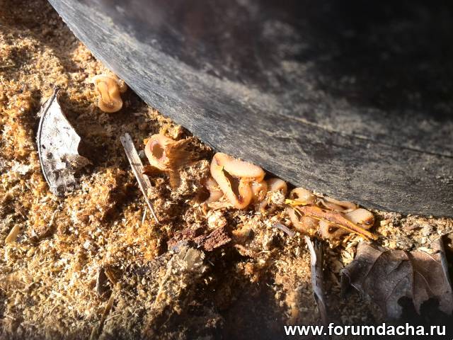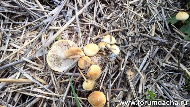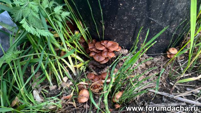 в яме со "слоеным пирогом " из остатков корней, коры, древесины, стружек, соломы и навоза от своей коровки выросла семья вот таких грибов.