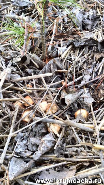 Эти грибы выросли на грядке с сеянцами Кедра Сибирского.