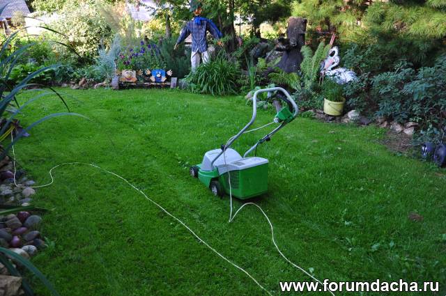 Газон удается скосить все реже и реже.Влажно,а косилка электрическая.