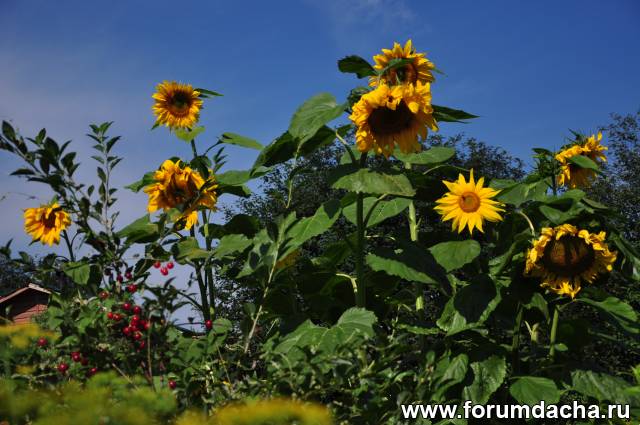 Подсолнухи на малиновой мульче выросли выше 3 метров.
