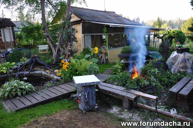 Иногда на ужин заглядывают соседи,допоздна сидим у костра.