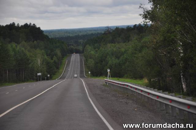 Дорога до Ачинска,вокруг плотный лес-тайга.