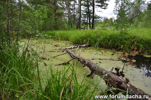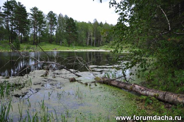 Часть водоема покрыто ряской,много поваленных деревьев.Сильные тут ветра!