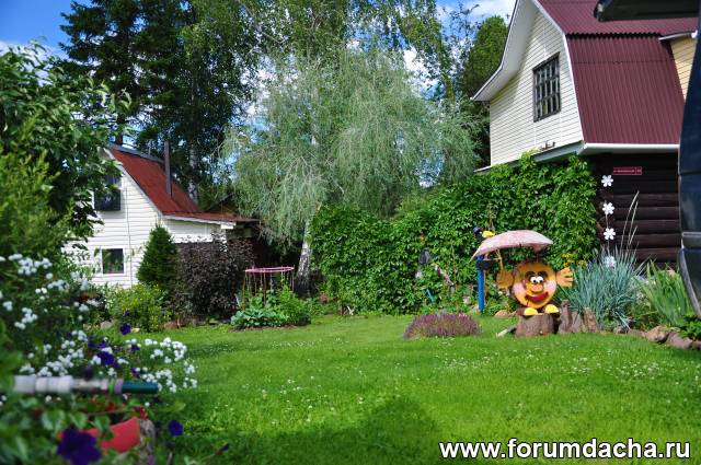 Слева от колобка кочка чебреца,привезенного с Алтая. Чебрец стал активно рассеиваться по всему газону.