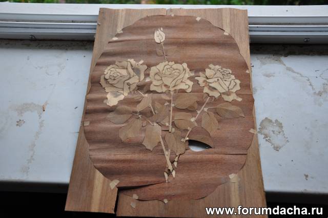 На чердаке нашел старую не законченную работу резьба по шпону.