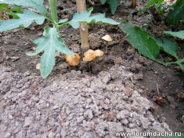 Вот такие грибочки выросли у меня в огороде, там где когда-то мульчировал испорченными семенами гречихи.
