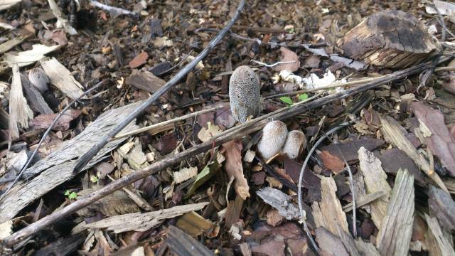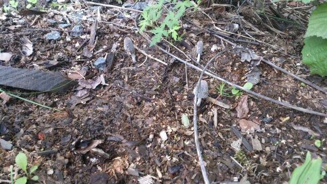 Вот такие грибки росли периодически всё лето в этом месте, - маленькие - не больше пяти сантиметров. Подозреваю что навозники. Естественно выросли сами.Это среди молодых кустов лещины под довольно взрослым маньчжурским орехом...Где то рядом был зарыт мицелий весёлки, чуть подальше поливал водой с мутинусами. Ну и чисто из романтических побуждений закопал в корнях маньчжурца покупной мицелий трюфеля - не выбрасывать же....