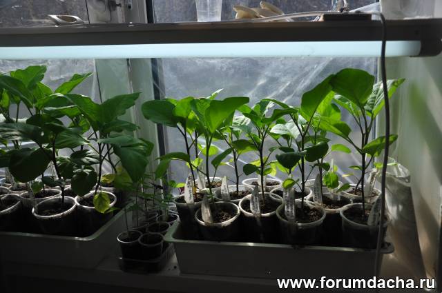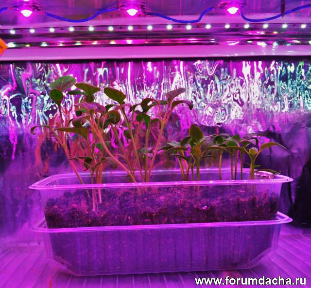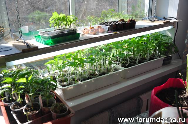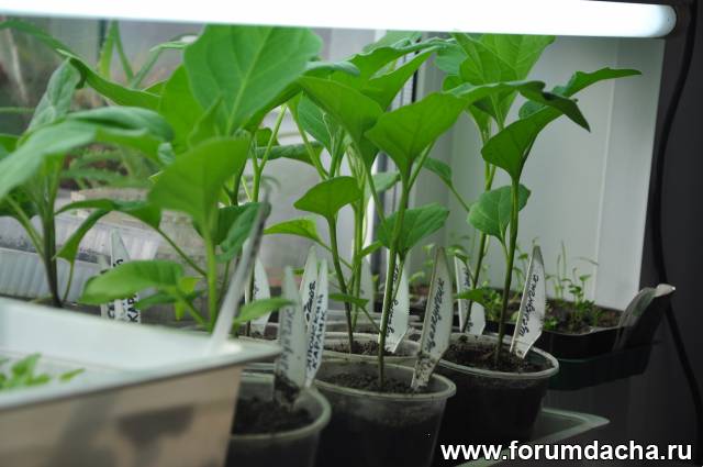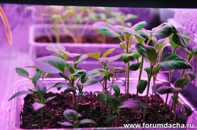 Сегодня пересаживал баклажаны.Под новым светом они не вытянулись.