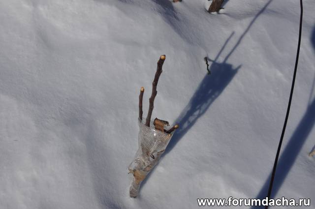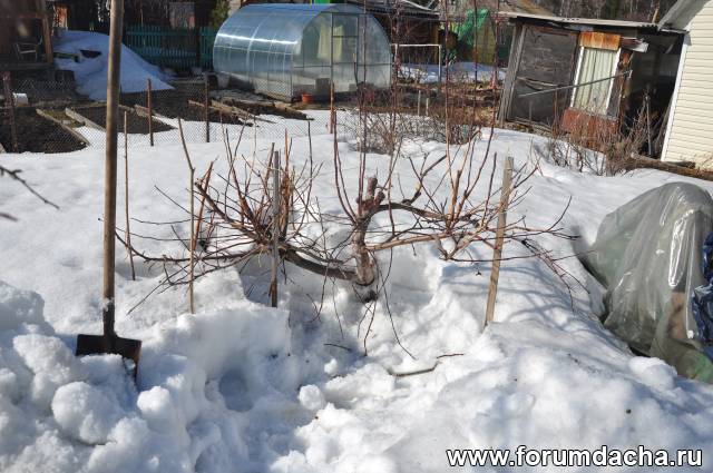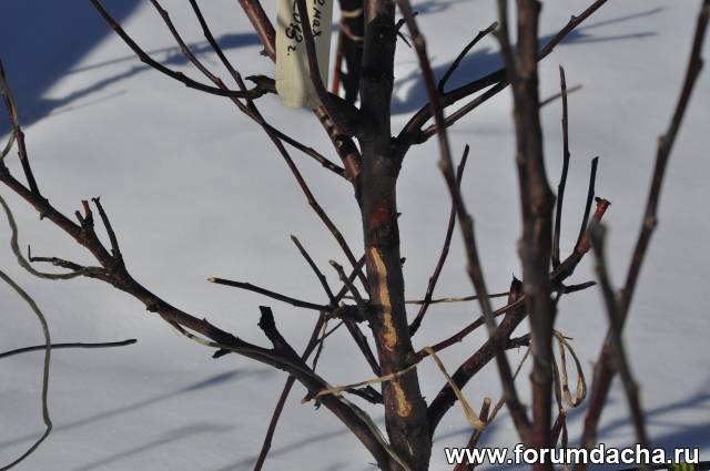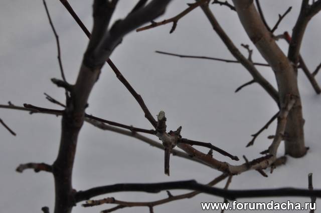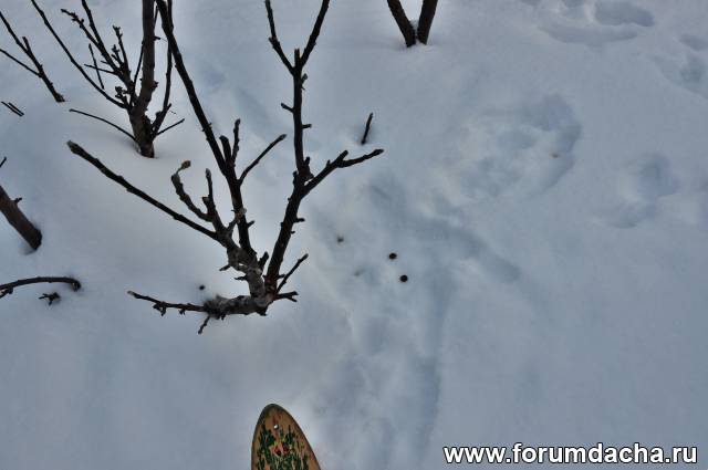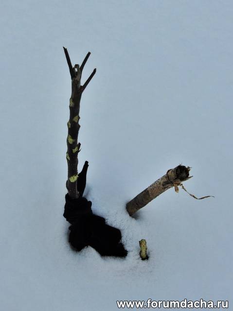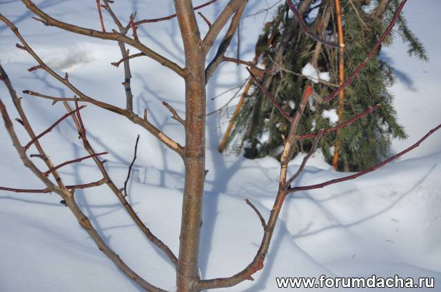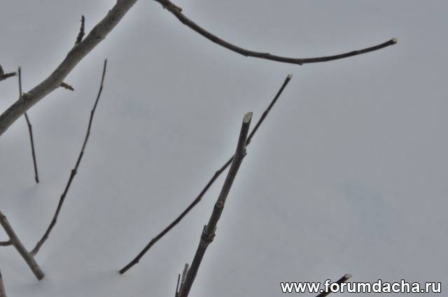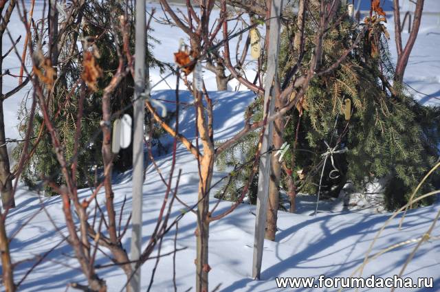 Больше всех пострадала от зайцев крупноплодная яблоня.Только в центре остались не тронутые ветки,по переферии все срезали.