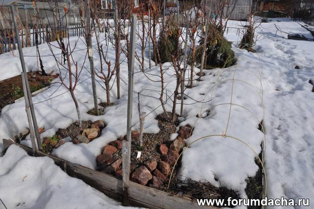 Здесь порезали вишню и срезали все что торчало из под снега у посева краснолистных подвоев.