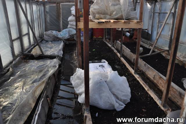 в теплице стоит вода.Посеяли капусту,редис укроп