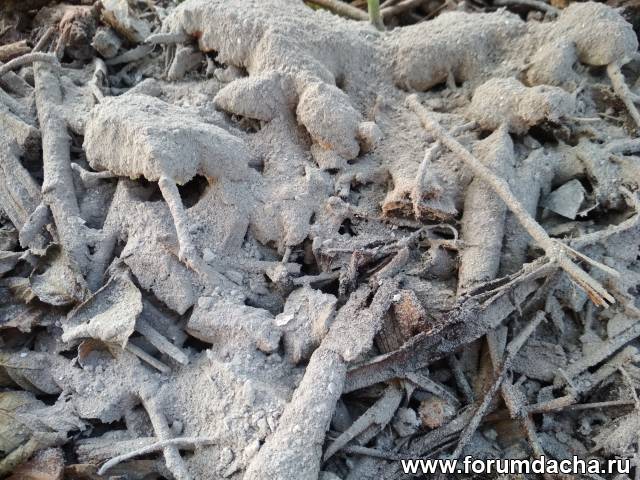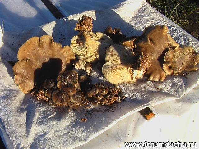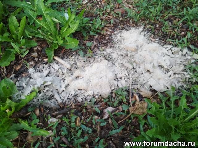 В этот раз я их обильно присыпал древесной золой, зола втянула влагу гриба и он слегка подсох. Ну, думаю, уберу чуть позже.