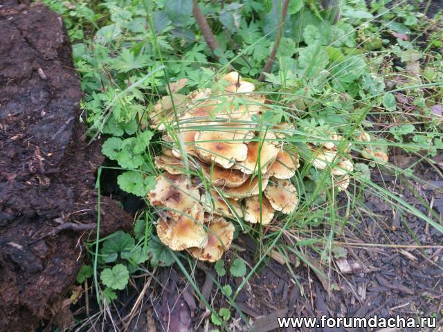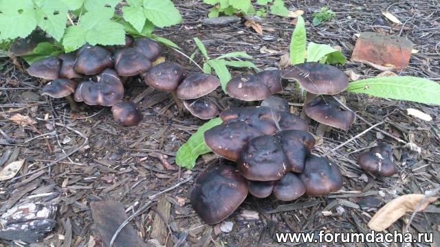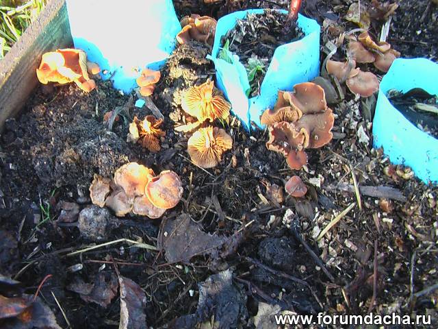 На гряде с саженцами в пакетах выросли вот такие грибы