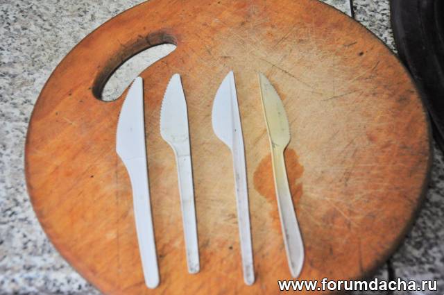 Второй меньше но приемлемо .третий самый не удачный-хрупкий и писать не где.но такие ножи сейчас в продаже.Четвертый вариант лучше-достался от соседей сам не видел в продаже.