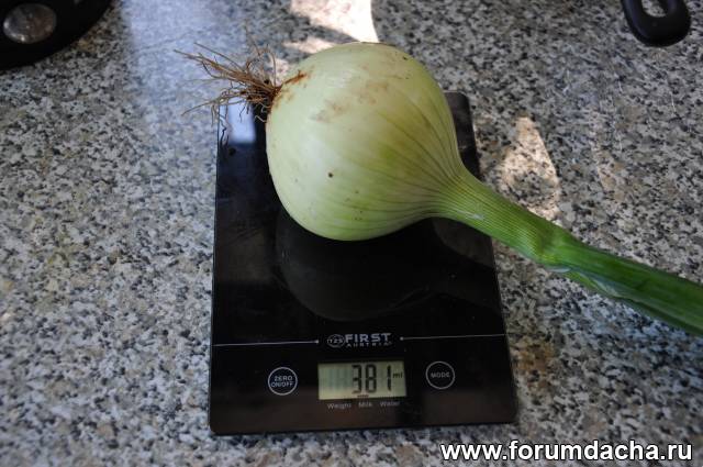 вырастает 200-300 гр. при среднем лете.С десяток луковиц до 400 гр.