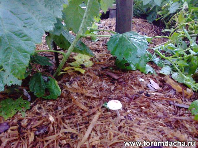 Вот и первые грибы на моем участке появились. Уж не знаю на сколь они толковые и впишутся ли в выстраиваемый процесс, но все равно меня этой радует, - грибы признали мою мульчу годной для проживания.